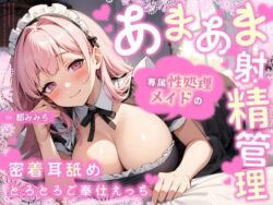 専属性処理メイドのあまあま射精管理では、密着耳舐めやご奉仕が描かれています。ちゃんとぴ発電所の作品はおっぱい、ご奉仕、パイズリ、フェラ、メイドが好きな方におすすめです。この作品ではメイドが主人公にさまざまな奉仕を行います。